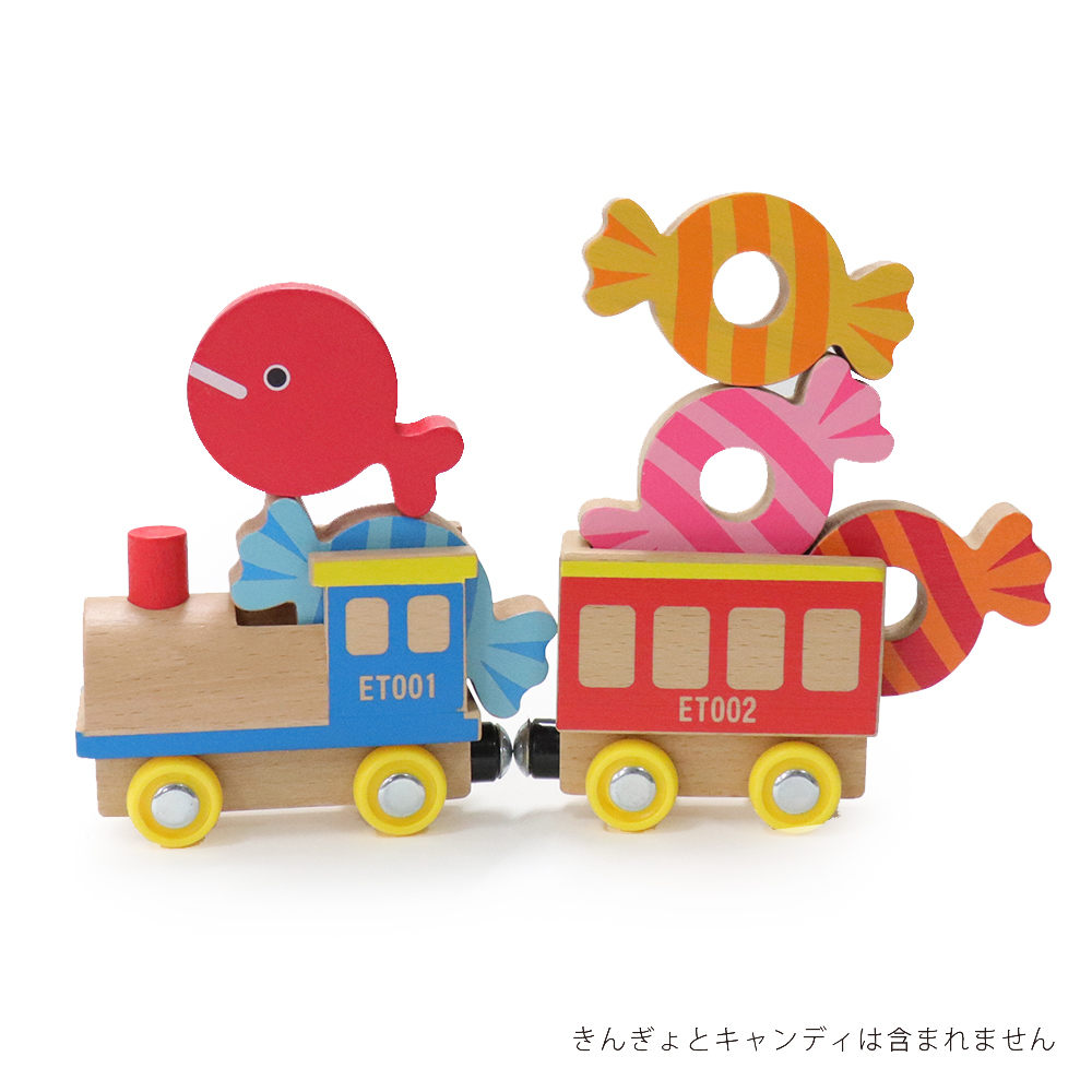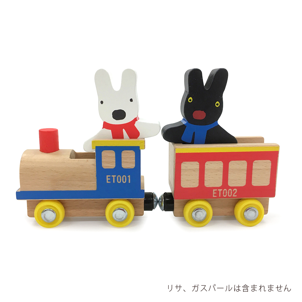 素材本体(天然木 ブナ)、車軸(鉄)、連結部(ナイロン・磁石)、車輪(PP)