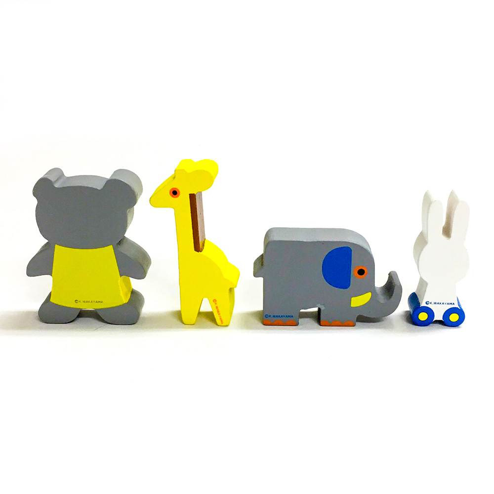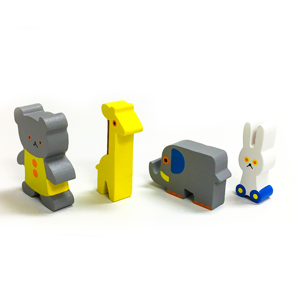 | 積み木サイズ | こぐまちゃん:約(横)5.6×(縦)7.1×(厚さ)1.8cm ぞうさん:約(横)7.1×(縦)4.3×(厚さ)1.8cm うさぎさん:約(横)2.5×(縦)6.3×(厚さ)1.8cm きりんちゃん:約(横)4.0×(縦)7.6×(厚さ)1.8cm |