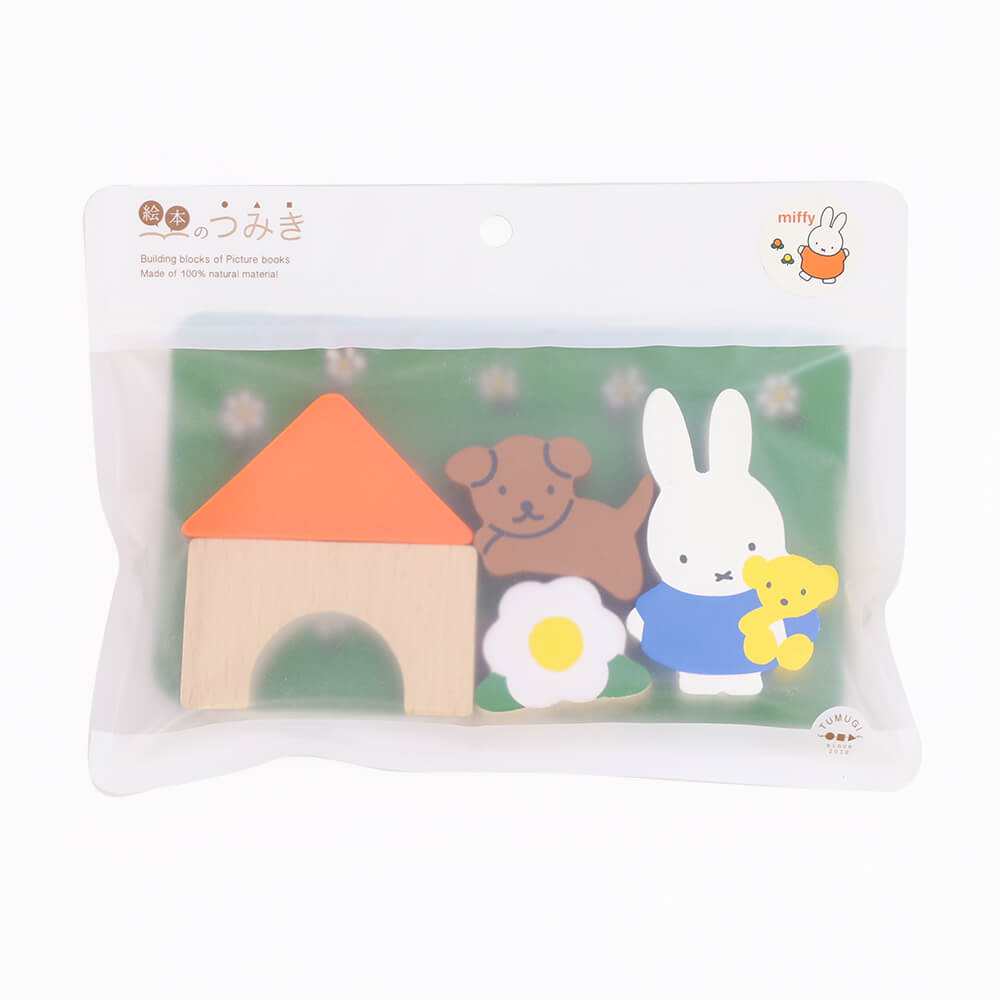 内容積み木5個(ミッフィーとくま・スナッフィー・お花・屋根・おうち)、リーフレット