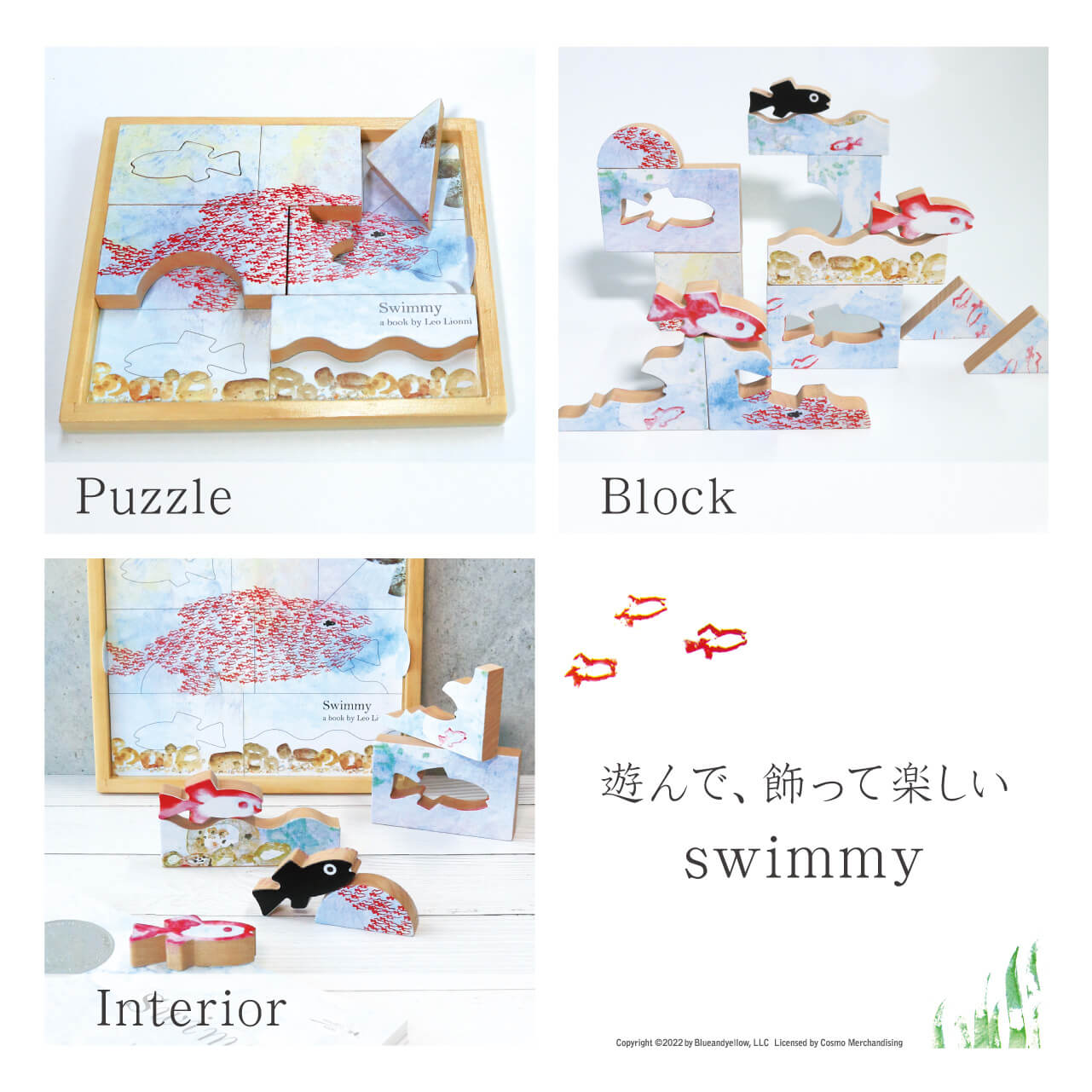 | 積み木サイズ ※一部 | スイミー:約(横)6.0×(縦)2.8×(厚さ)1.5cm 木製トレイ:約(横)21.7×(縦)19×(厚さ)1.5cm |