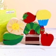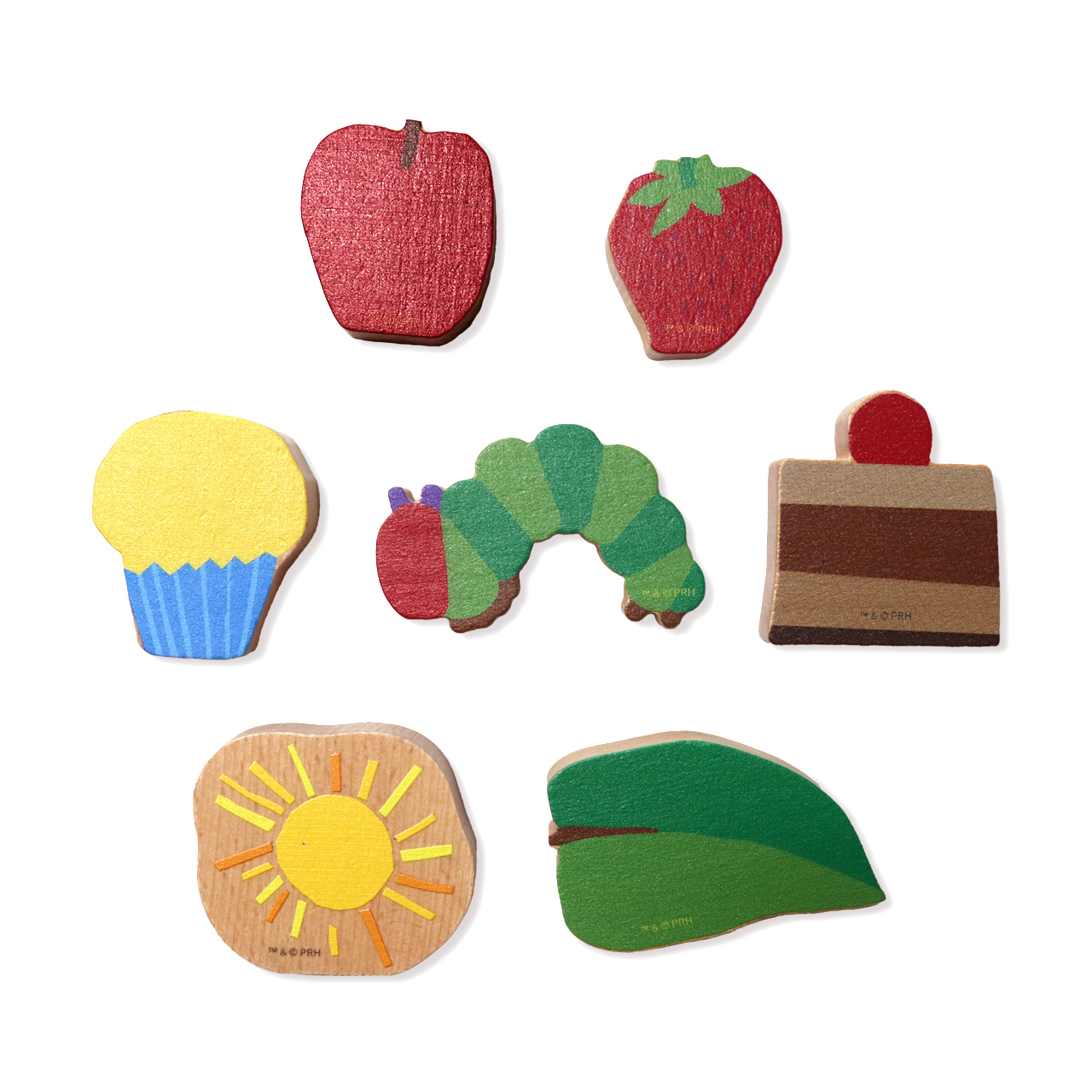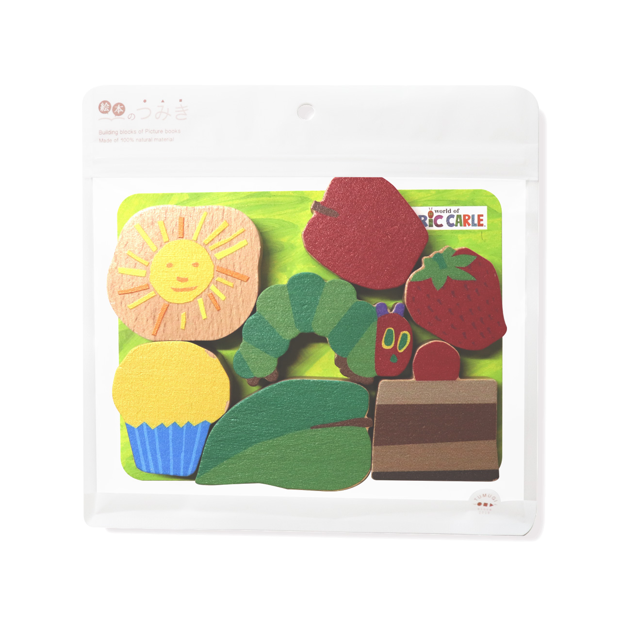 | 内容 | 積み木8個 (はらぺこあおむし・ちょうちょ・すいか・アイスクリーム・チョコレートケーキ・チーズ・カップケーキ)、リーフレット |
